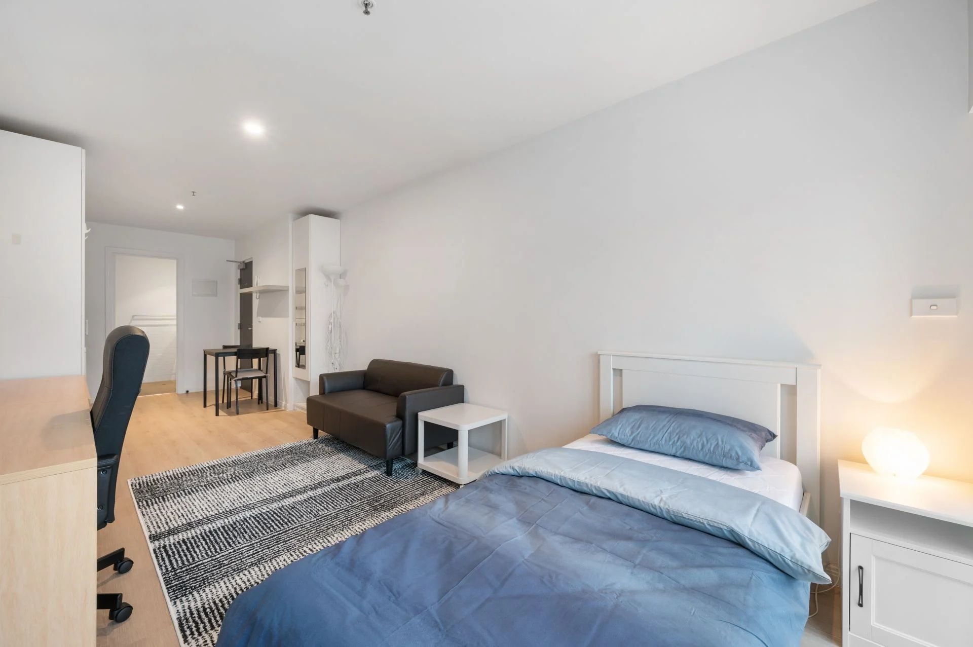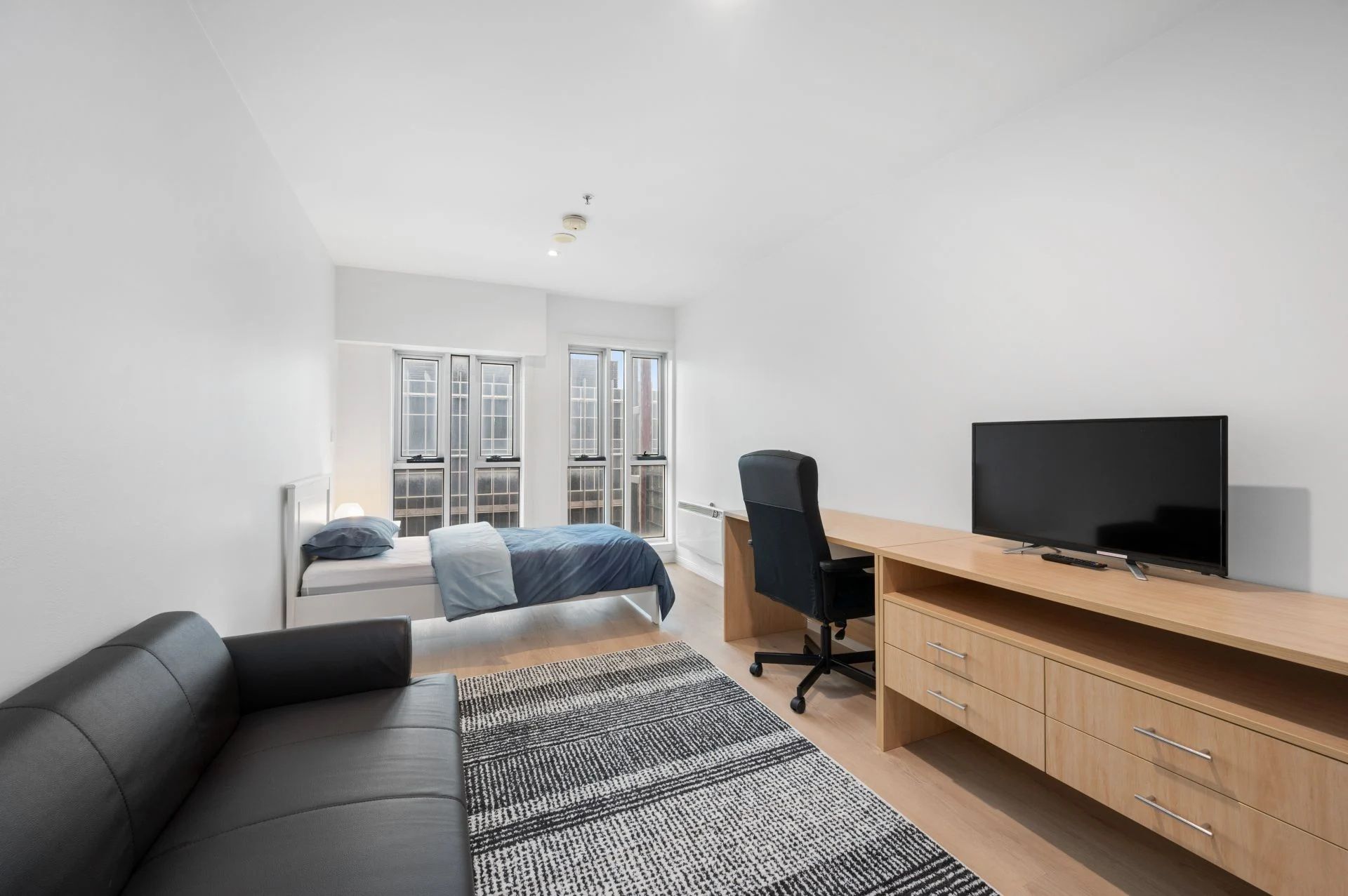 These fully furnished studio apartments are designed for student life – move in and feel at home right away.