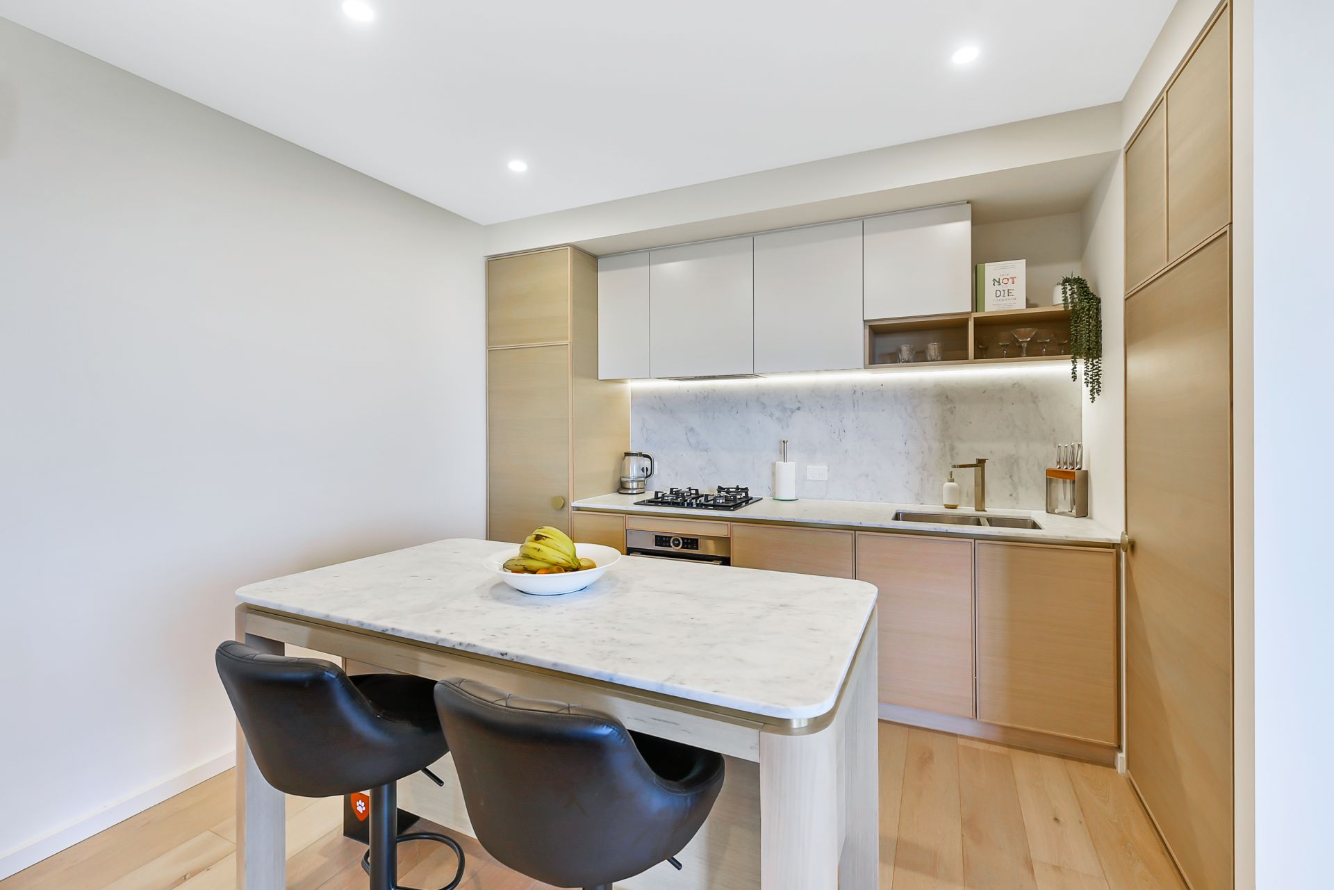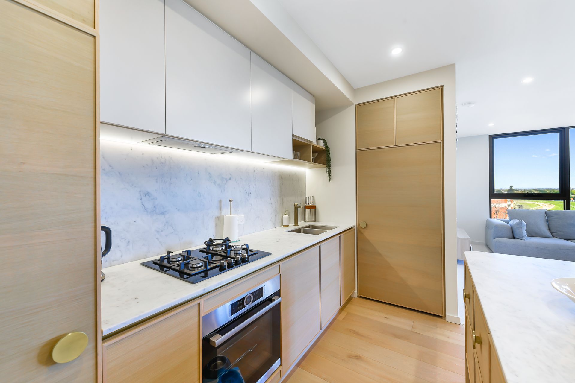 – Kitchen offering quality stone benchtops, appliances, gas cooktop, oven, and dishwasher
